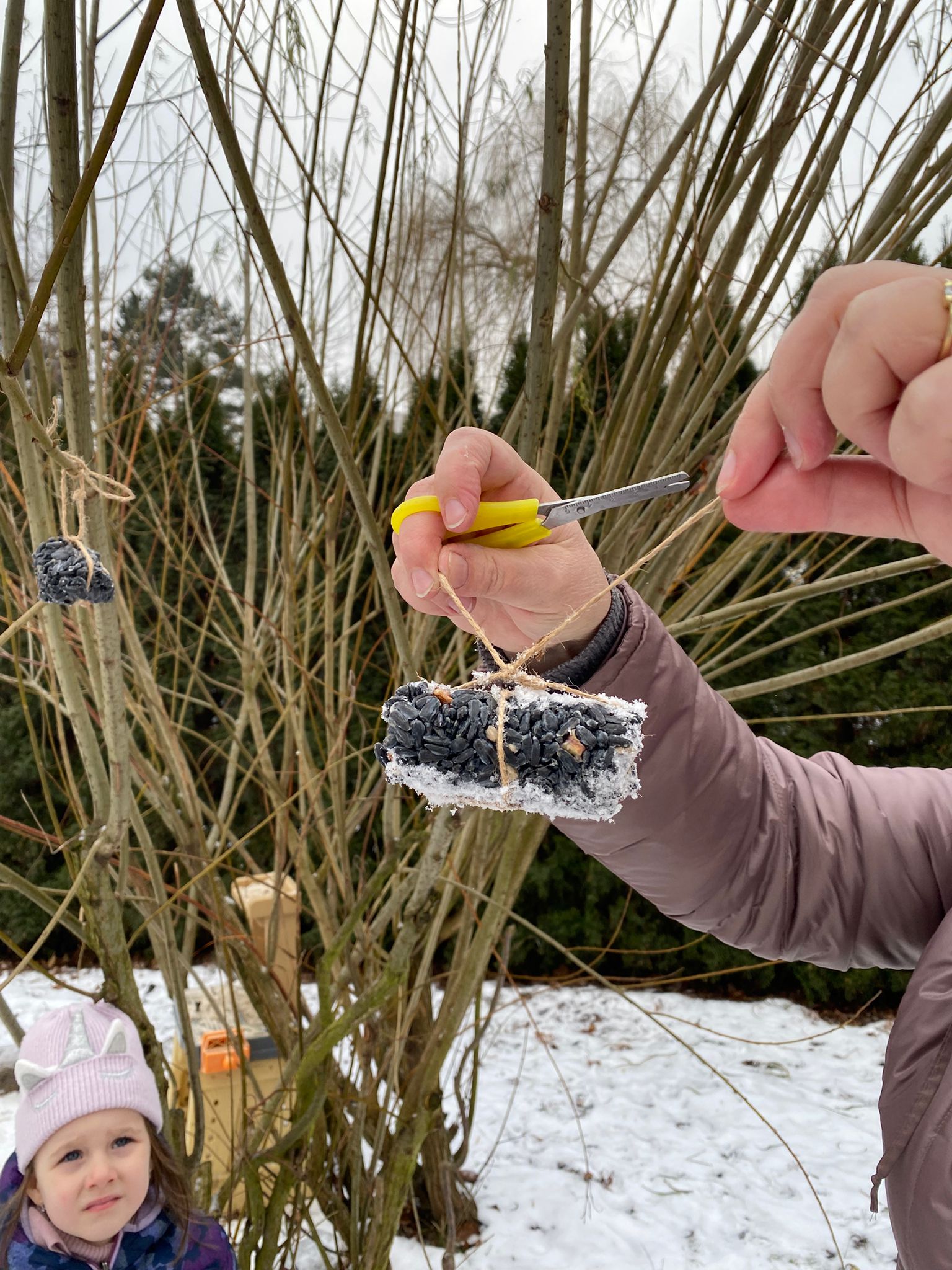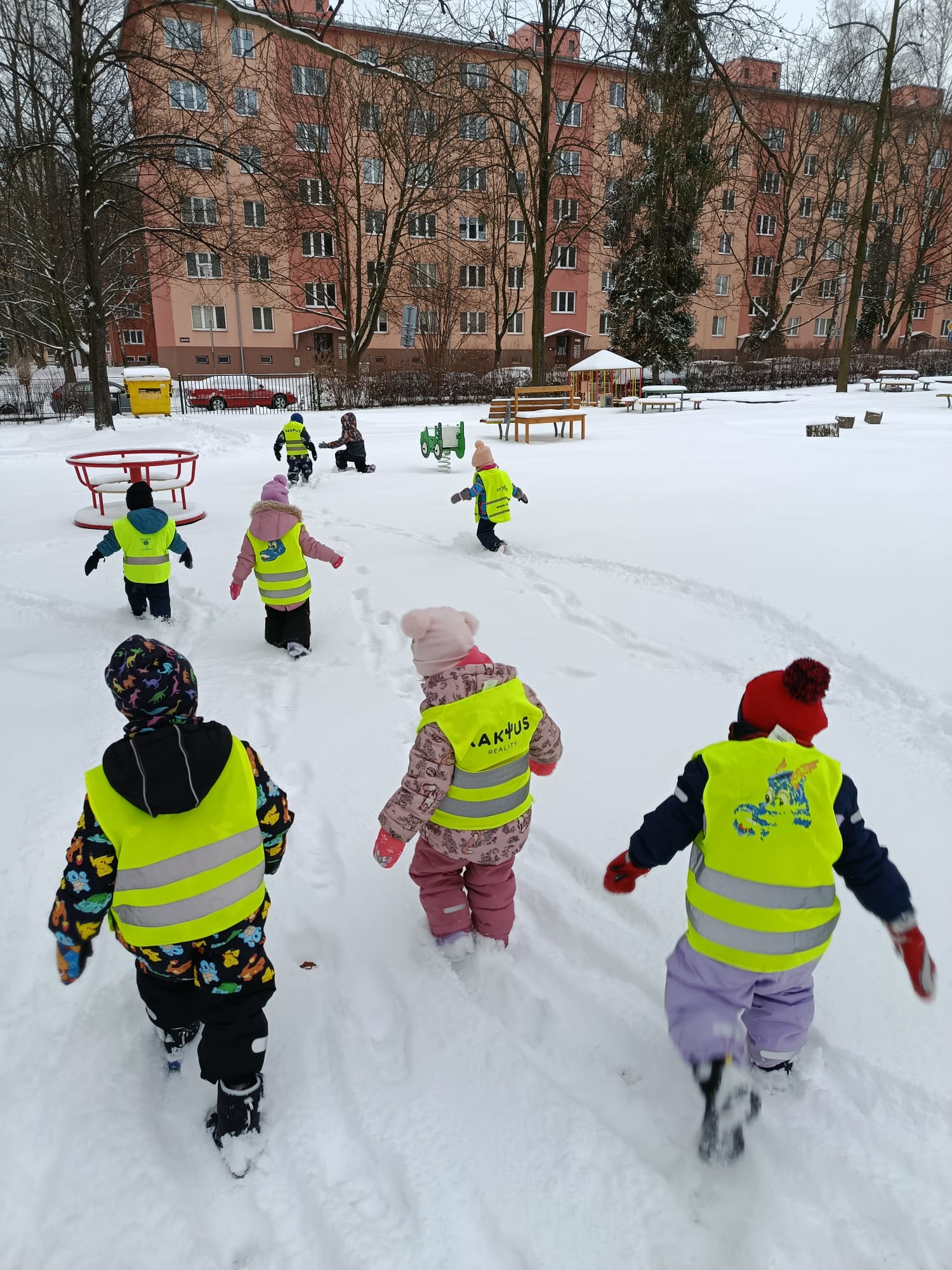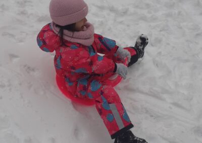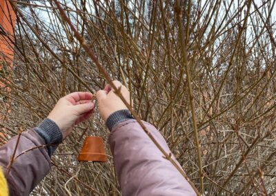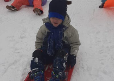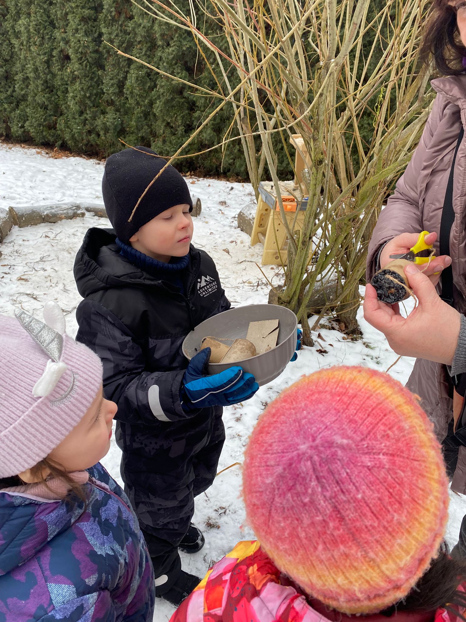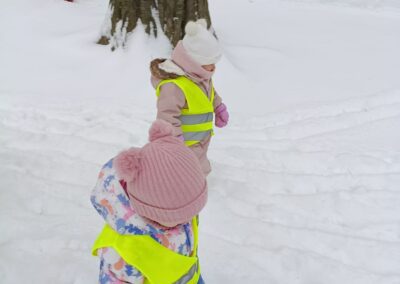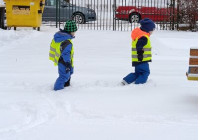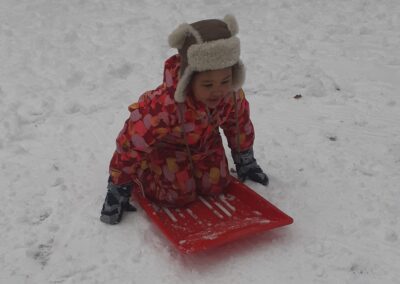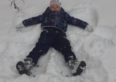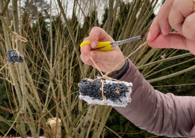 Sledování stop ptáků a zvířátek ve sněhu na školní zahradě. Poznali jsme stopy veverky, zajíce a havranů.