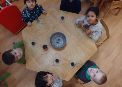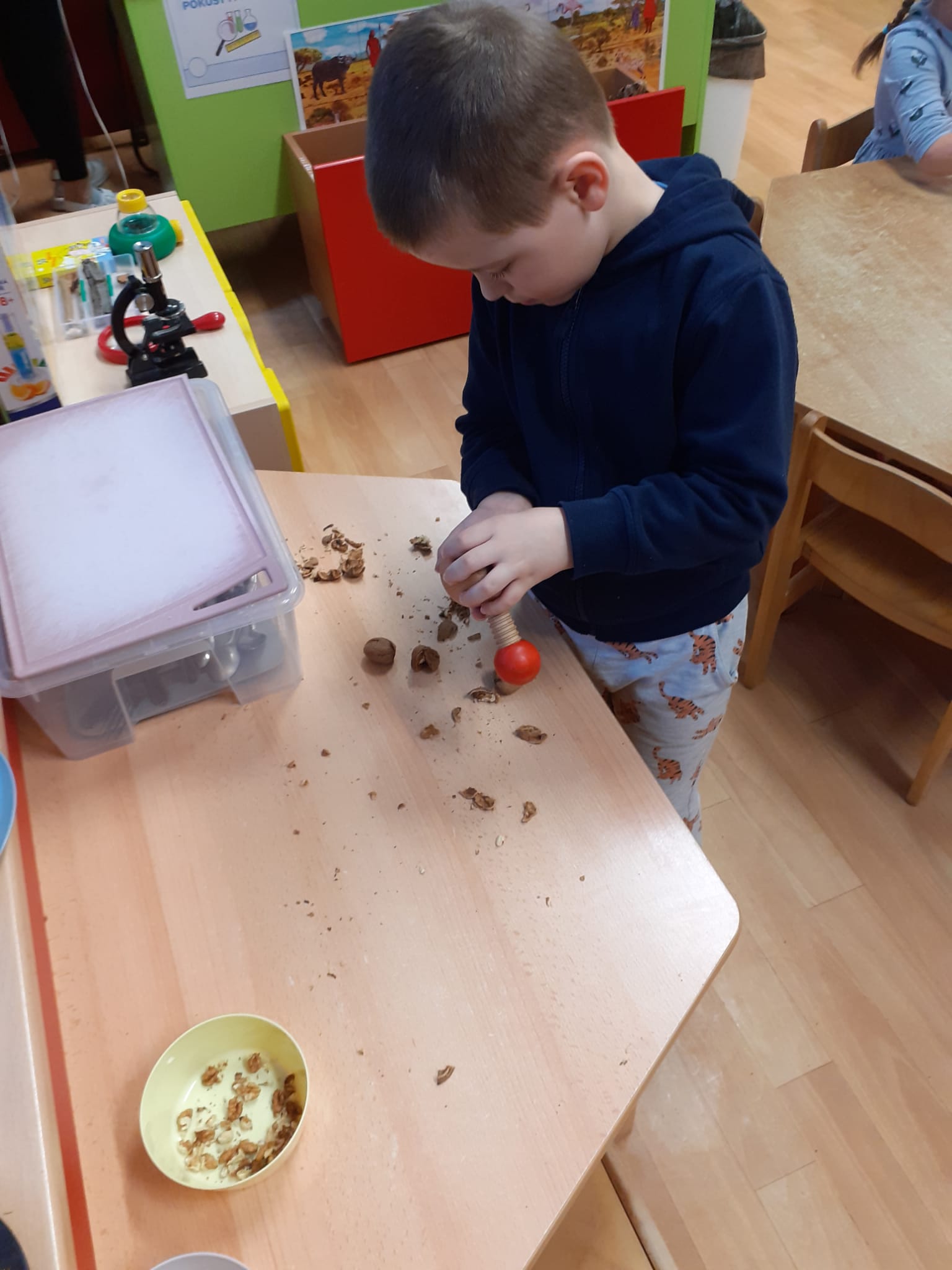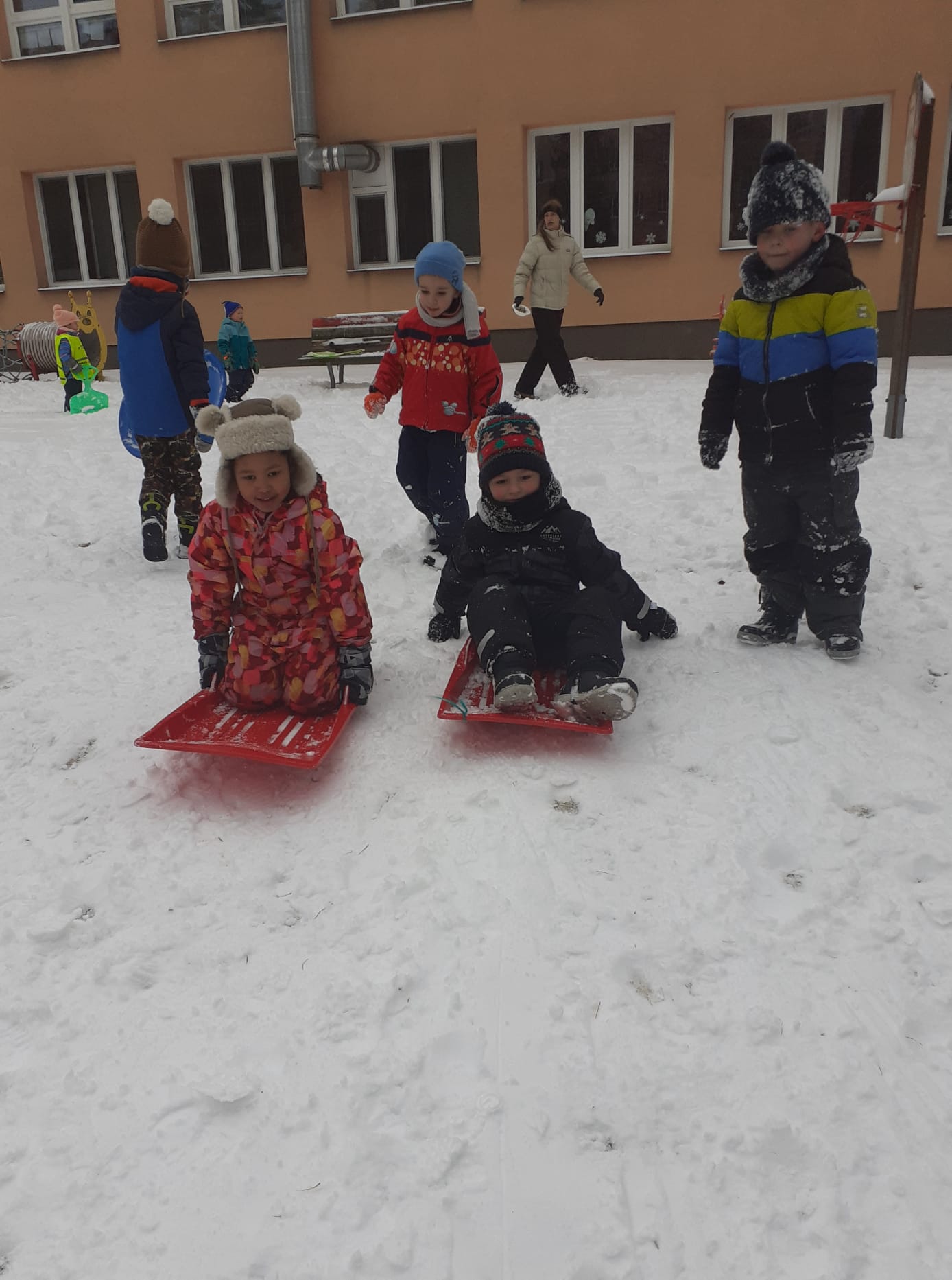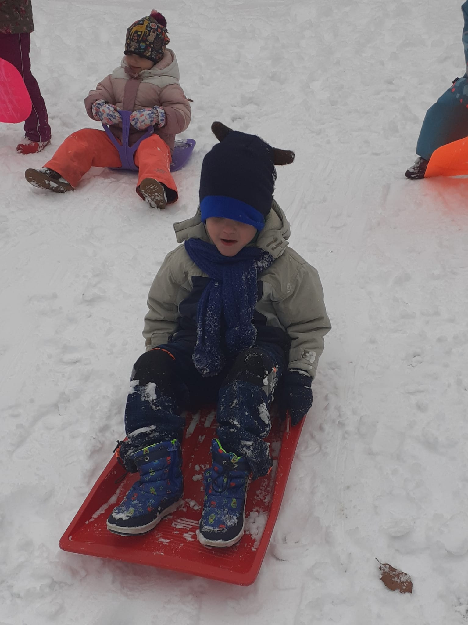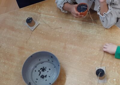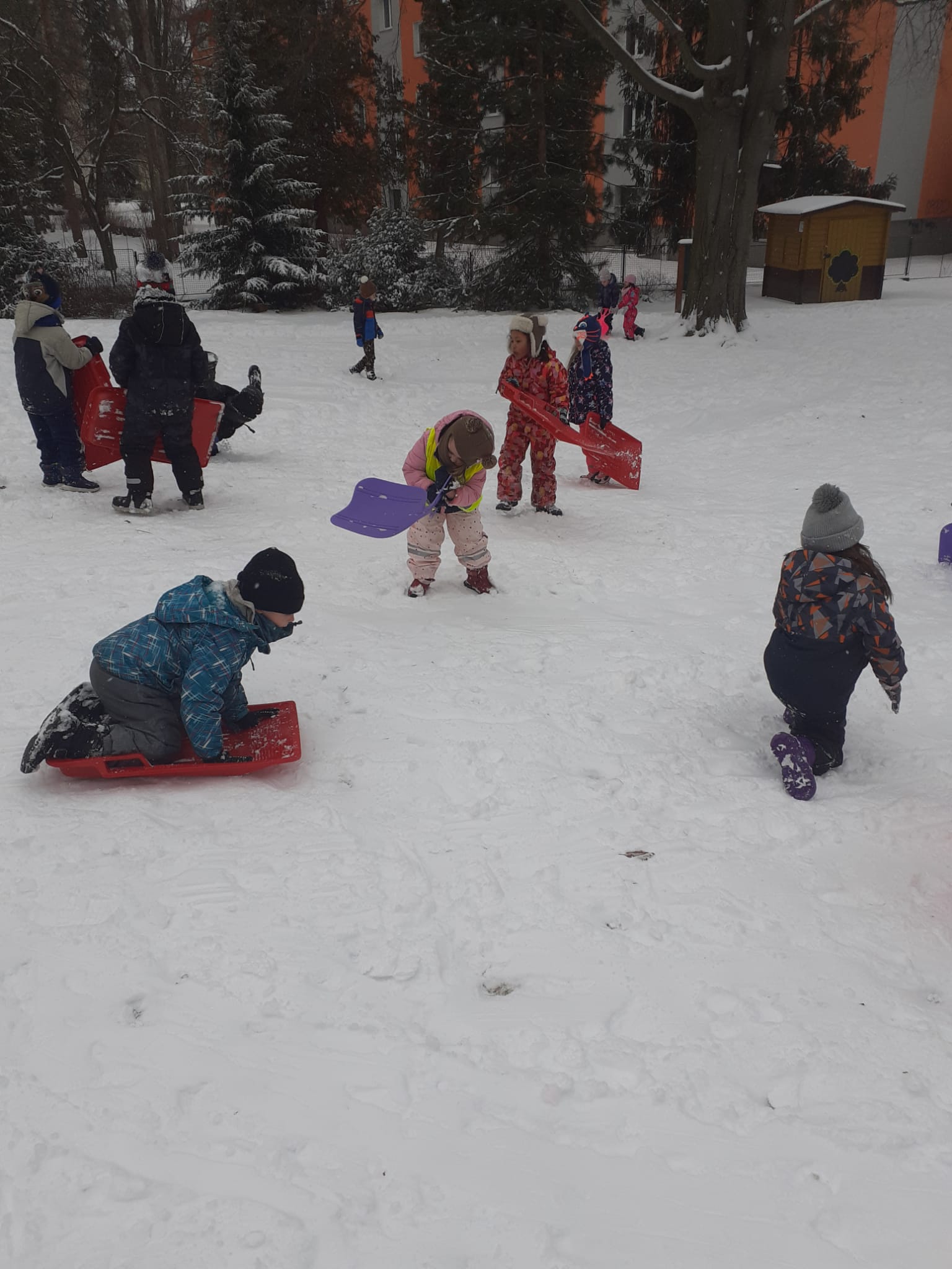 Sledování stop ptáků a zvířátek ve sněhu na školní zahradě. Poznali jsme stopy veverky, zajíce a havranů.